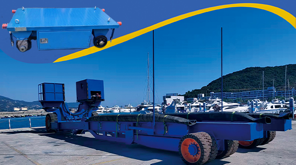 65T重型游艇拖車是由佛山南工車輛制造有限公司研發團隊研發生產的一款重型游艇拖車。拖車可實現自行走、轉向、升降、水平調整以及寬度調節功能。通過自身行走舉升等功能,托舉起游艇在指定的區域內轉運,以及在碼頭區域將游艇從水面拖至岸上,或從岸上將游艇運送至水面。應用場合:應用于游艇俱樂部、旅游基地、游艇制造廠、船廠等。